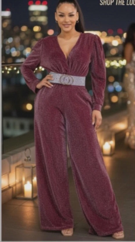 BURGUNDY SHIMMER JUMPSUIT